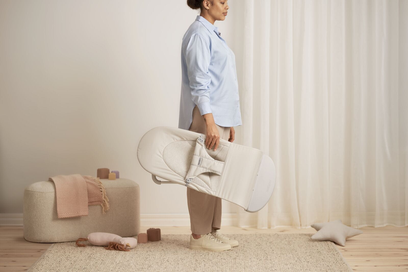 Leżaczek BabyBjörn ułatwia codzienność z maluszkiem i posłuży bardzo długo, nawet do ok. 3 lat. Jest lekki i poręczny – łatwo przeniesiesz go między pokojami lub zabierzesz na wakacje czy do dziadków. To także miejsce, w którym dziecko może bawić się blisko Ciebie, a Ty masz na chwilę wolne ręce.