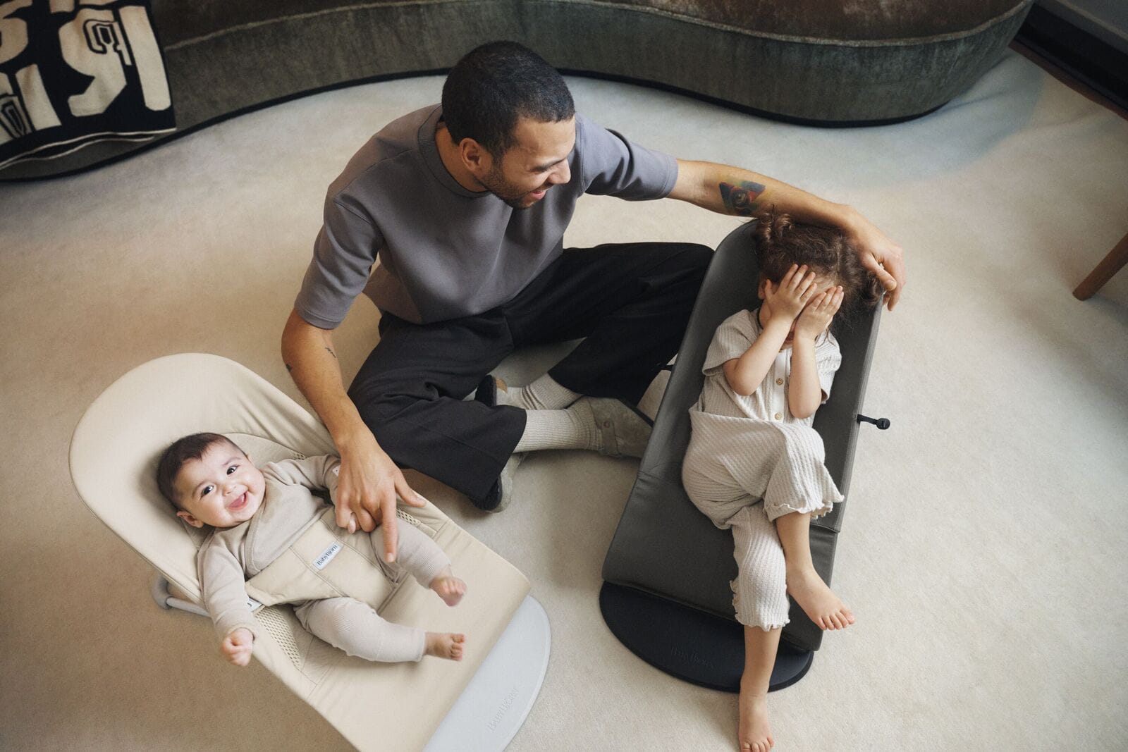Leżaczek BabyBjörn kołysze się naturalnie – ruch generowany jest przez dziecko. W odróżnieniu od modeli z wibracjami czy muzyką zasilanych baterią lub sieciowo, jest lżejszy i łatwiejszy do przenoszenia, a rytm kołysania nadaje sam maluch.