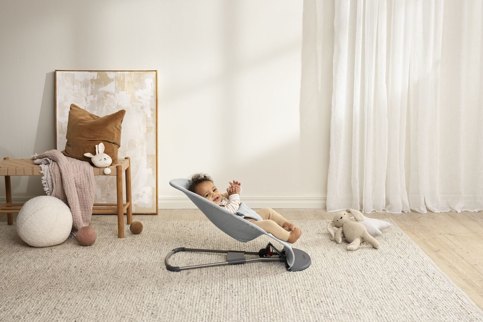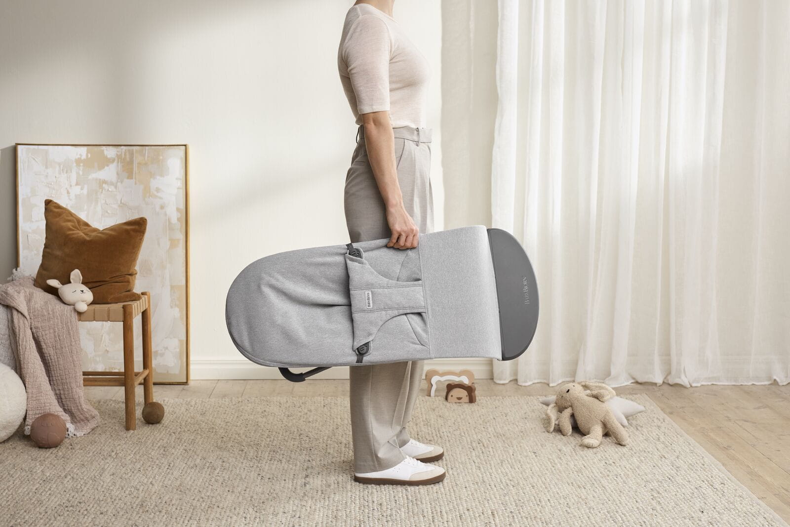 Leżaczek BabyBjörn ułatwia codzienność z maluszkiem i posłuży bardzo długo, nawet do ok. 3 lat. Jest lekki i poręczny – łatwo przeniesiesz go między pokojami lub zabierzesz na wakacje czy do dziadków. To także miejsce, w którym dziecko może bawić się blisko Ciebie, a Ty masz na chwilę wolne ręce.