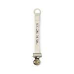 - Pielęgnacja: jeśli zawieszka się ubrudzi przetrzyj ją wilgotną ściereczką z odrobiną mydła lub delikatnego detergentu. Dłuższe działanie płynu lub wilgoci może doprowadzić do rdzewienia. Metalowy klips należy przypinać wyłącznie do odzieży. Nie należy próbować przyczepiać go do grubszych powierzchni, takich jak wózek czy leżaczek, ponieważ można w ten sposób uszkodzić mechanizm zapięcia.