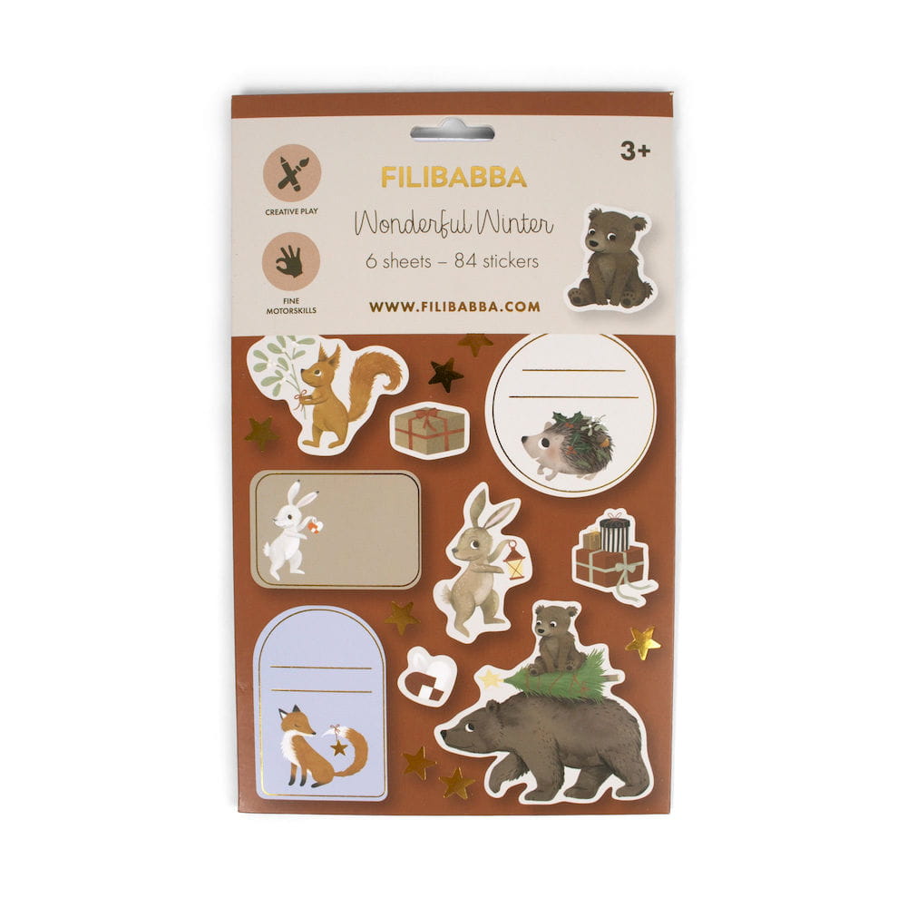 Naklejki na okno przedstawiają urocze leśne zwierzątka i klasyczne świąteczne elementy, wnosząc przytulny urok estetyki FILIBABBA do Twoich okien. To idealny sposób na stworzenie niezwykłej atmosfery w Twoim domu na czas Bożego Narodzenia.