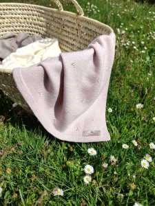 GlamWool Kocyk 100% wełna merino Flower Premium /pudrowy róż