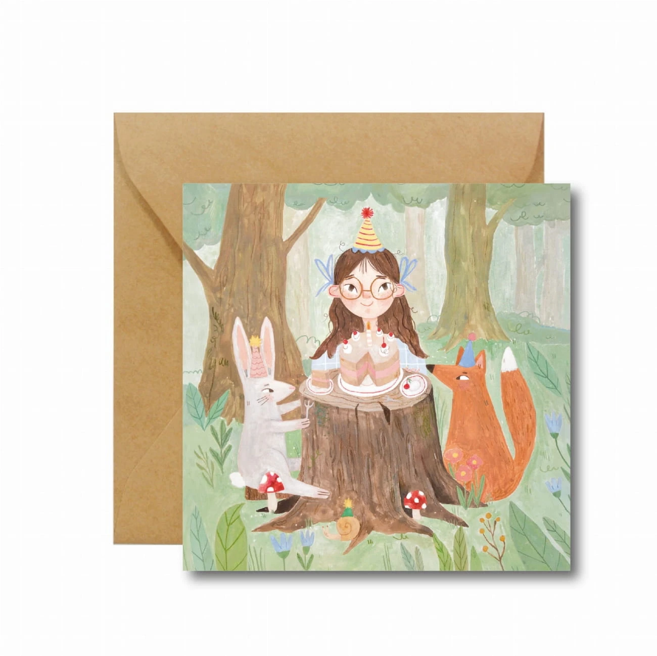 Kartka urodzinowa to idealny produkt dla osób, które szukają wyjątkowego sposobu na złożenie życzeń. Takich, które zostaną na dłużej, bo są zapisane na papierze, a nie wystukane na klawiaturze. Motyw lasu na naszej kartce pasuje szczególnie do przyjęć organizowanych na świeżym powietrzu, chociaż zimą z kolei, może przywoływać ciepłe myśli związane z ciepłą porą roku ;)