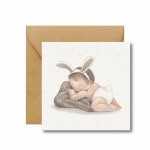 Są takie chwile, które zasługują na coś więcej niż SMS. Narodziny dziecka to jedna z nich. Kartka „Born to be loved” od Hi Little to delikatna, ręcznie ilustrowana kartka na narodziny, która wzrusza i rozczula. Przedstawia śpiącego maluszka w uszkach króliczka, który całkiem niedawno pojawił się na świecie.