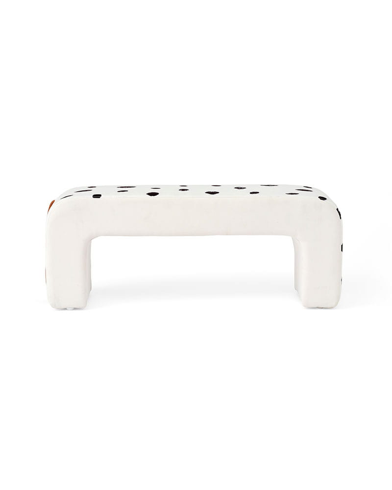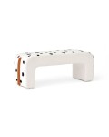W wielu historiach Pippi Pończoszanka z właściwą sobie pewnością siebie wskakuje na grzbiet swojego konia i rusza przed siebie – bez siodła, bez zbędnych ceregieli. Ta długa, wyściełana ławka czerpie inspirację właśnie z tego ducha wolności. Tapicerowana tkaniną w kropki, przywodzi na myśl cętkowaną sierść Lilla Gubben, a jej miękko zaokrąglone końce zapraszają do odpoczynku.