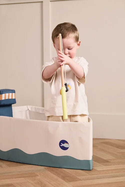 Ta łódka zachęca dzieci do ćwiczenia wyobraźni, jednocześnie dodając zabawy do każdego pomieszczenia dzięki miękkiemu, marynarskiemu wzornictwu i kolorom. Dzieci mogą zarzucać wędki lub wypływać w odległe, niezbadane krainy, a łódź staje się sceną ich nieograniczonych marzeń.
