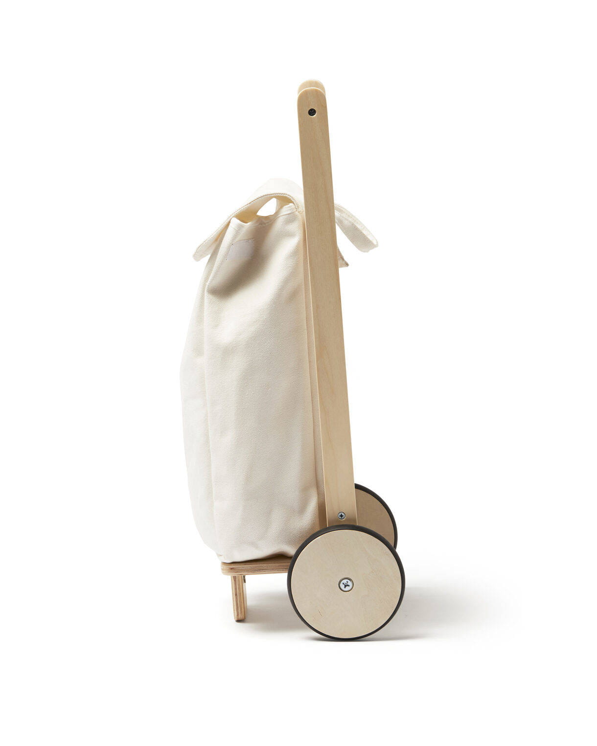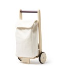Jesteś na zakupach? Masz dość noszenia mleka w torbie? Oto rozwiązanie! Wózek na zakupy dla dzieci. Wykonany jest z drewna z certyfikatem FSC. Z pewnością ułatwi zabranie ze sobą wszystkich sprawunków. Ma mocną płócienną torbę do przechowywania jedzenia, zapinaną na rzep. Torba jest przymocowana do wózka za pomocą rzepu. Można ją łatwo zdjąć i wyprać. Wózek ma drewniane koła pokryte gumą, która redukuje hałas i zapobiega niszczeniu podłogi.