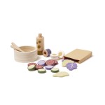Drewniany zestaw do przygotowania sałatki z serii Kid’s Hub to idealna propozycja do zabawy w gotowanie i serwowanie posiłków. Piękna miska z widocznym rysunkiem słojów drewna, warzywa w różnych kształtach i kolorach, sztućce oraz papierowa torba – wszystko to sprawia, że dziecko może wcielić się w rolę kucharza, kelnera lub klienta restauracji. Zabawa w gotowanie wspiera rozwój motoryki małej i rozwija wyobraźnię.