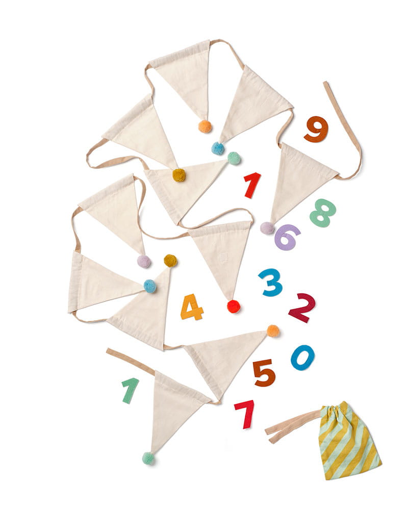 Girlandę możesz zawiesić nad stołem, wzdłuż ściany lub rozciągnąć przez całe pomieszczenie, aby stworzyć wyjątkową atmosferę podczas przyjęcia. W zestawie znajduje się mały tekstylny woreczek, który umożliwia przechowywanie cyferek i utrzymanie porządku pomiędzy kolejnymi urodzinami.