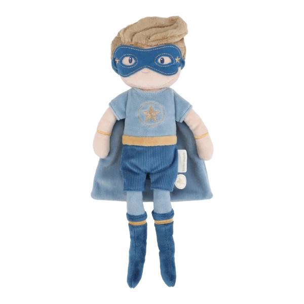 Poznaj Superbohatera Jima przytulankę gotową na każdą przygodę. W swojej odważnej masce, miękkiej pelerynie i ze złotą gwiazdą na piersi Jim pobudza wyobraźnię i zaprasza do świata pełnego fantazji. Jego mięciutkie ciało zachęca do przytulania i wspólnej zabawy. Idealny do pocieszania, odkrywania nowych historii czy zabierania ze sobą w drogę. Wykonany z wyjątkowo miękkiego materiału i zaprojektowany z miłością – dla małych bohaterów każdego dnia.