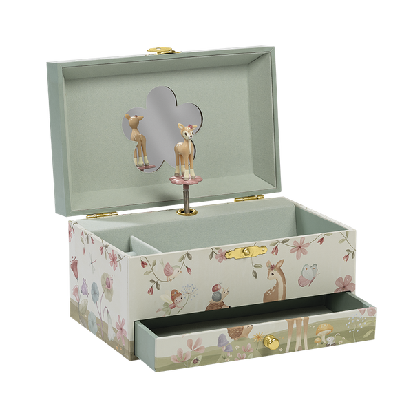 Szkatułka z pozytywką - Sarenka od Little Dutch. Po nakręceniu pozytywki i otwarciu tej pięknej szkatułki, Sarenka zacznie tańczyć przed lusterkiem w rytm przyjemnej muzyki. Szkatułka sprawdzi się doskonale do przechowywania dziecięcych skarbów oraz biżuterii. Będzie również uroczą dekoracją dziecięcego pokoju. Wspaniały pomysł na prezent. Szkatułka nie zawiera biżuterii.