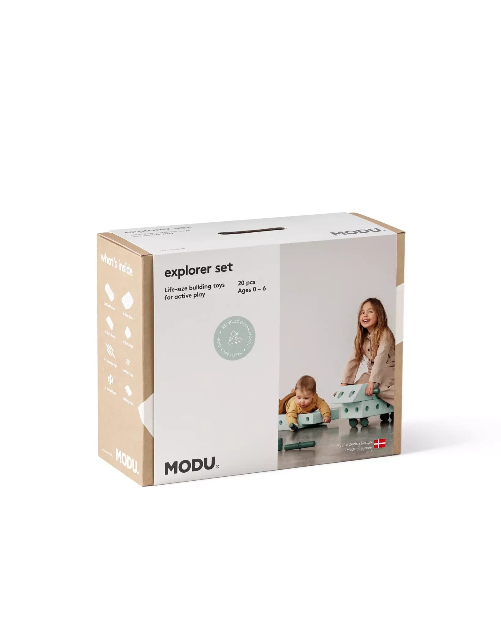 Eksploruj świat MODU! Ten zestaw oferuje co najmniej 15 budowli, a otwartym umysłom gwarantuje nieskończoną ilość kreatywnych kreacji. Rozwiń zdolności motoryczne swojego dziecka otwartą zabawą z MODU. Budujcie zabawne pojazdy, bujane koniki, stwórzcie deskę balansującą albo cokolwiek twórczego podpowie Wam wyobraźnia. Explorer set sprawdzi się w przypadku niemowląt i małych dzieci - wszystkich gotowych na przygodę: w tym rodziców! To średni zestaw, który zapewni Twojemu dziecku godziny zabawy.
