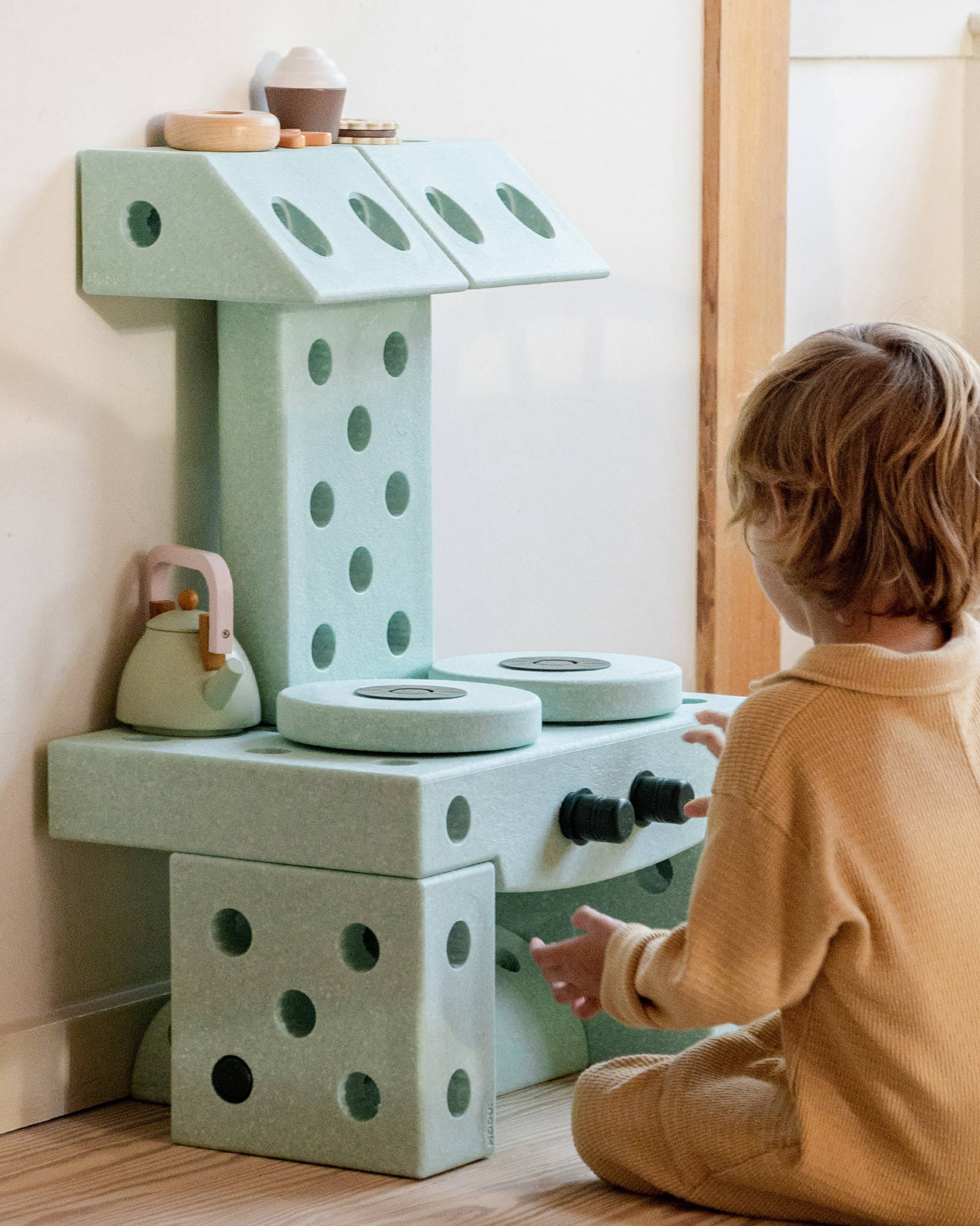 MODU – zestaw 4 piankowych kół to idealne uzupełnienie każdego zestawu MODU. Umożliwiają budowanie mobilnych konstrukcji – jeździków, wózków, taczki czy kreatywnych wynalazków, takich jak kuchenka lub DJ-ski pulpit. Dzięki dwóm sposobom montażu (luźne lub turkoczące) dzieci mogą eksperymentować z dźwiękiem i ruchem, rozwijając zmysły i motorykę w naturalny sposób. To bezpieczne i lekkie koła, które dodają zabawie nowej dynamiki.
