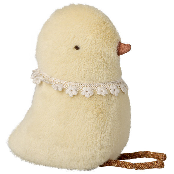 Mały pluszak idealny do małej rączki. Kurczaczek mini jest uroczy i bardzo miękki. Nóżki z dzianinowego sznurka ze złotym efektem. Metalowe jajko należy kupić osobno.