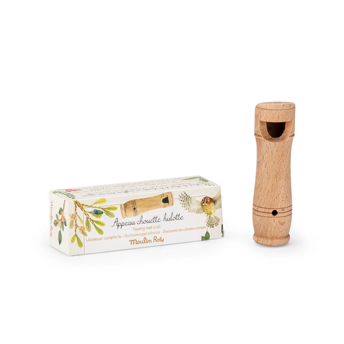 Drewniany wabik na sowy pozwala imitować dźwięki wydawane przez te ptaki. Naśladowanie ptaków to świetny sposób na spędzenie wartościowego czasu w kontakcie z naturą. Wabik jest bardzo poręczny, zmieści się nawet w kieszeni w spodniach, dzięki czemu można go zabrać na spacer do lasu. To małe edukacyjne narzędzie przybliży dziecku świat ptaków poprzez zabawę oraz będzie stanowiło doskonałe ćwiczenie logopedyczne. Instrukcja użytkowania: Dmuchnij krótko w ustnik, zakrywając małą dziurkę palcem wskazującym, następnie dmuchnij długo, jednocześnie stukając w małą dziurkę podczas drugiego wydechu. Materiał: drewno bukowe Wykonane ręcznie we Francji. Można czyścić wilgotną ściereczką. Wiek: 2+ Wymiary: 13 x 4,3 x 4,3 cm