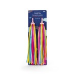 Udekoruj swój rower za pomocą multikolorowych frędzelków, które będą radośnie łopotać na wietrze podczas jazdy. Łatwe w montażu, wystarczy przypiąć je do boków kierownicy. Jazda rowerem będzie jeszcze ciekawsza!