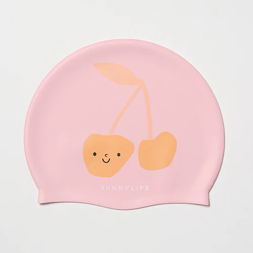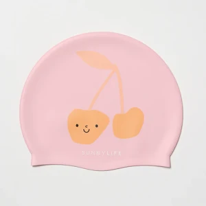 Wiśniowo-pastelowy czepek, który dziecko samo będzie chciało zakładać. Miękki silikon dopasowuje się do głowy bez ciągnięcia i ściskania – i wygląda na tyle słodko, żeby na chwilę zatrzymać się przy basenie z telefonem.