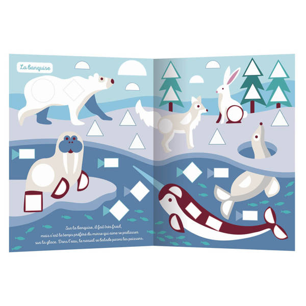 Zeszyt z naklejkami Kształty Zima od Auzou. Zestaw zawiera ilustrowaną książeczkę oraz 500 naklejek o geometrycznych kształtach do wyklejania z motywem zimowej krainy oraz zamieszkujących ją zwierzątek. Bardzo poręczny zestaw doskonale sprawdzi się w trakcie podróży. Świetny pomysł na drobny prezent. Wygodna forma zeszytu.