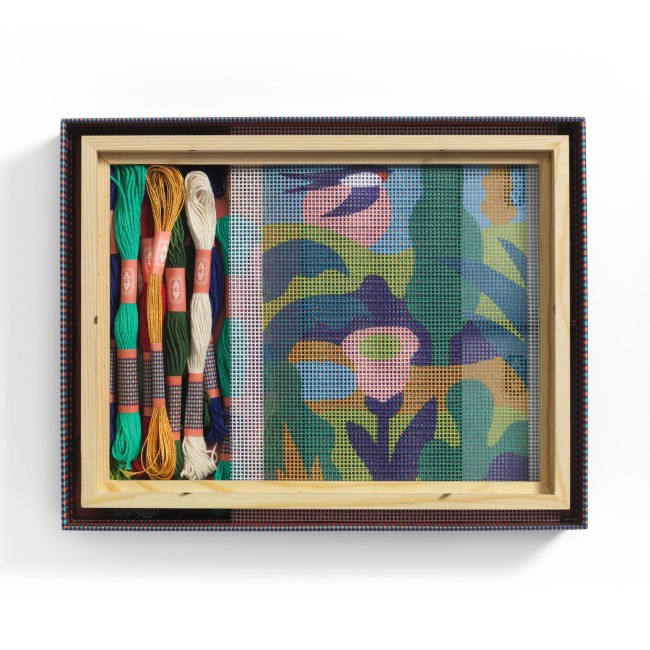 Atelier Grands Augustins - kolekcja zestawów artystycznych dla dorosłych - prezentuje technikę haftu gobelinowego. Odkryj sztukę wyszywania krok po kroku, we własnym tempie i w domowym zaciszu. Zestaw Atelier 65 zawiera wszystkie niezbędne narzędzia i akcesoria do stworzenia własnego obrazu przedstawiającego jaskółkę na tle krajobrazu w zielonych i niebieskich odcieniach.