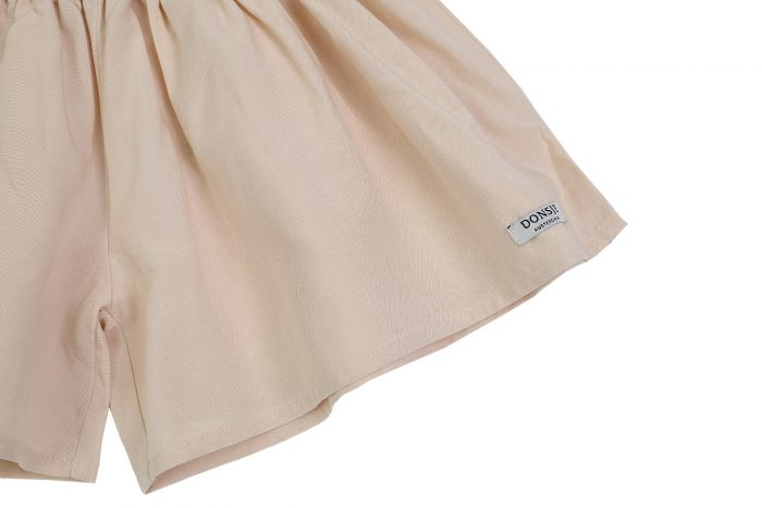 Romantyczny letni klasyk! Zobacz, jak maluch unosi się w powietrzu w tych delikatnych szortach z miękkiego lnu.