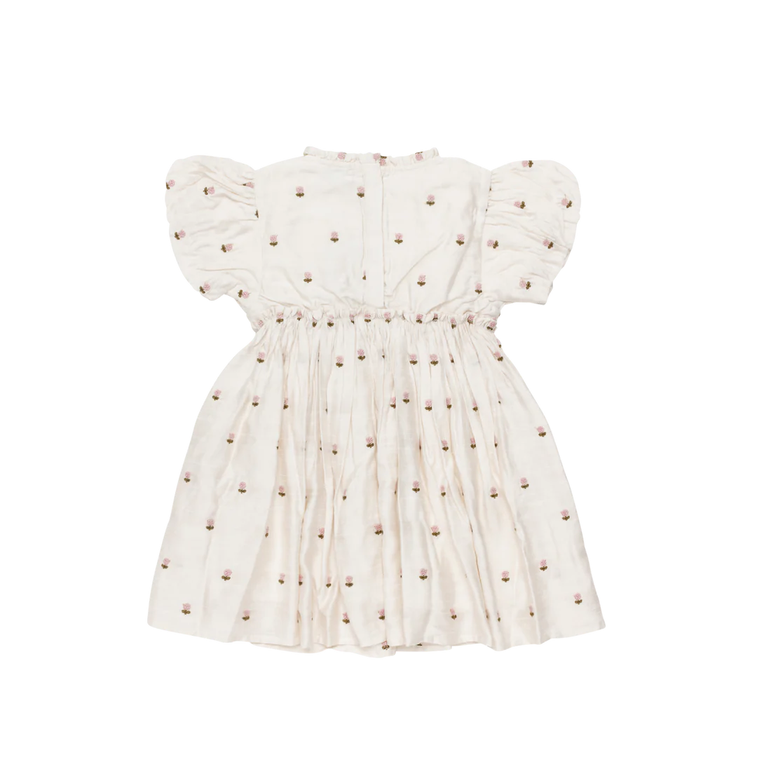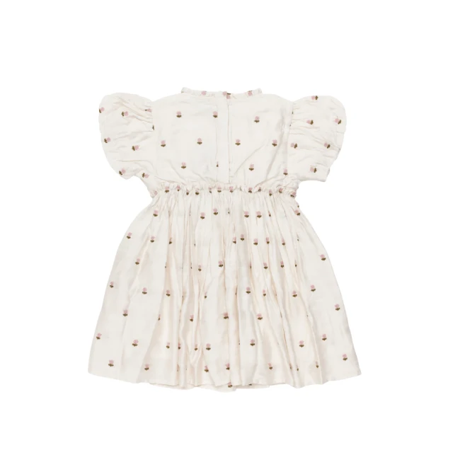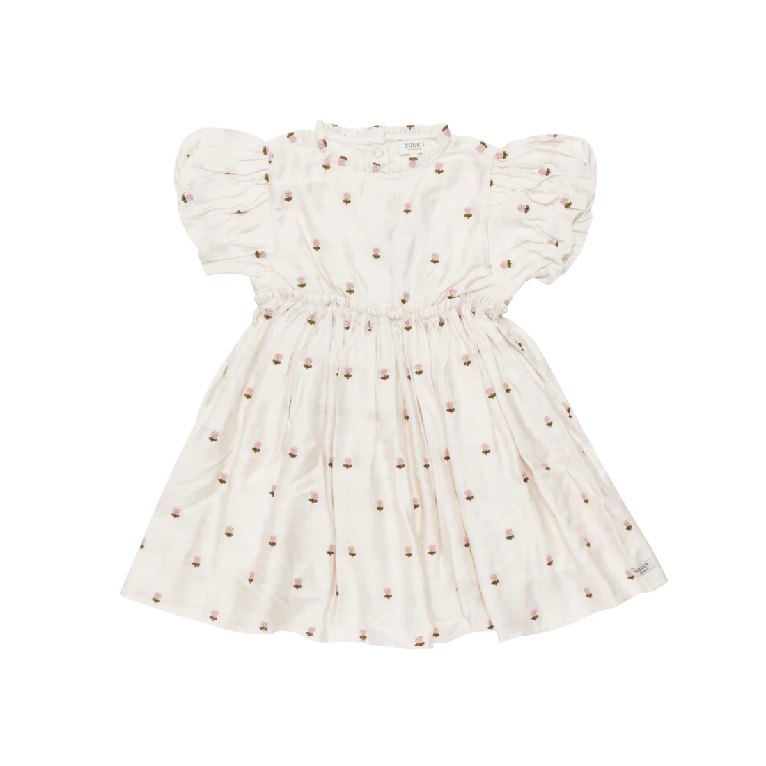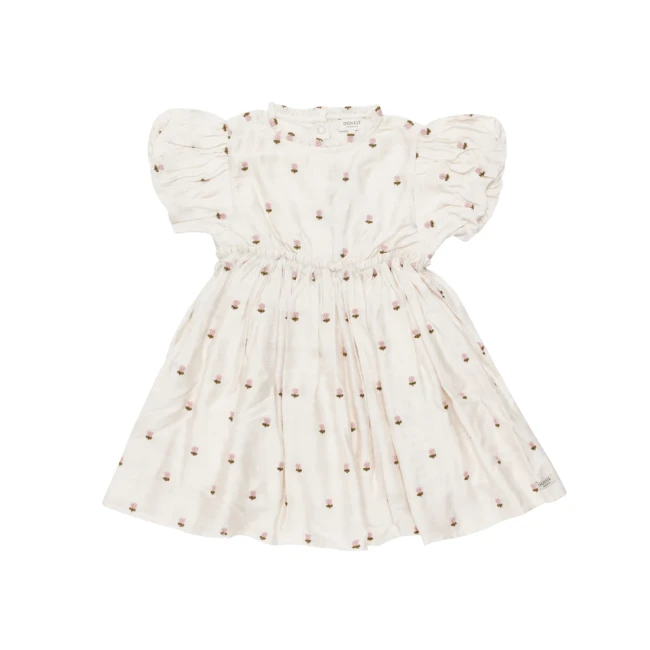 Zatrzymaj się i poczuj zapach róż! Zaprojektowana na radosne letnie dni sukienka Clarize jest idealna na uroczystości - duże i małe. Z ukrytymi zatrzaskami z tyłu, elastycznymi otworami na rękawy, elastycznym pasem i zdobieniami z haftowanymi różami, ta piękna sukienka oferuje ponadczasowy urok na każdą okazję.