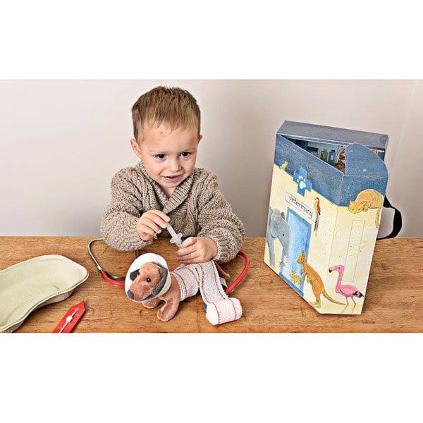 Niezbędnik, który będzie towarzyszył Twojemu dziecku w czasie wszystkich wycieczek czy podróży. Tekturowe opakowanie z rączką zmieściło podstawowe przedmioty niezbędne dla pracy weterynarza.