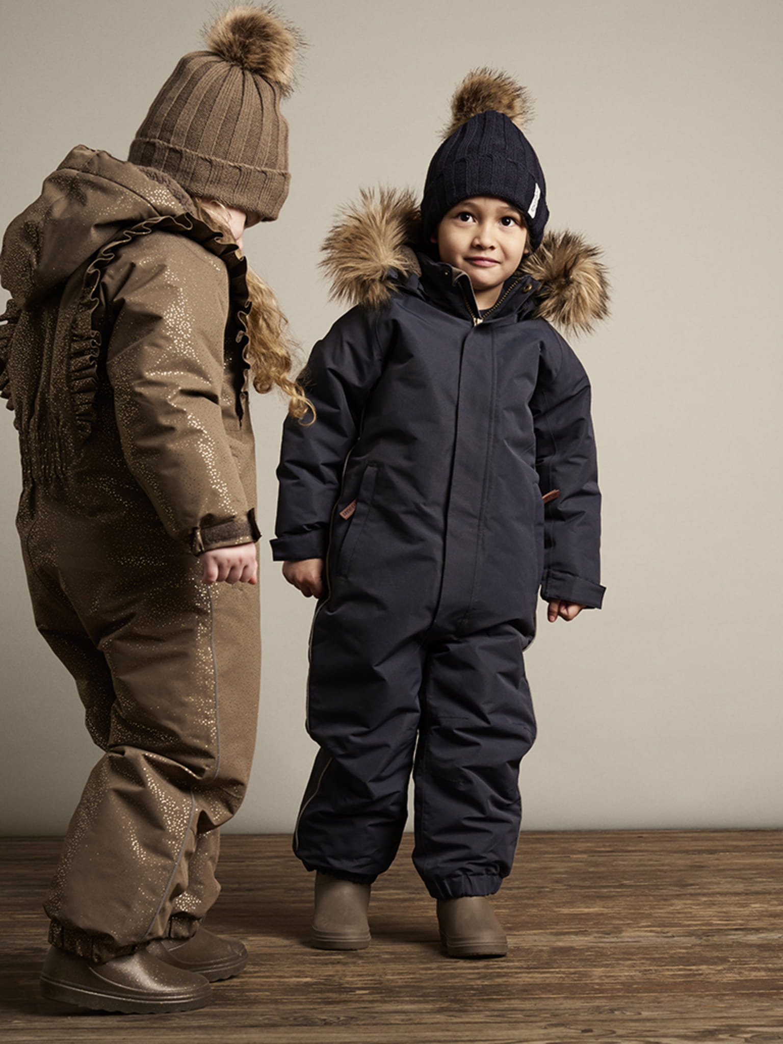Czapka ma futrzany pompon na górze i miękką polarową podszewkę w środku. Wykonany jest z dzianiny wełnianej, która jest miękka i wygodna. Materiał to 50% wełna i 50% akryl. Na czapce naszyte logo EN FANT.