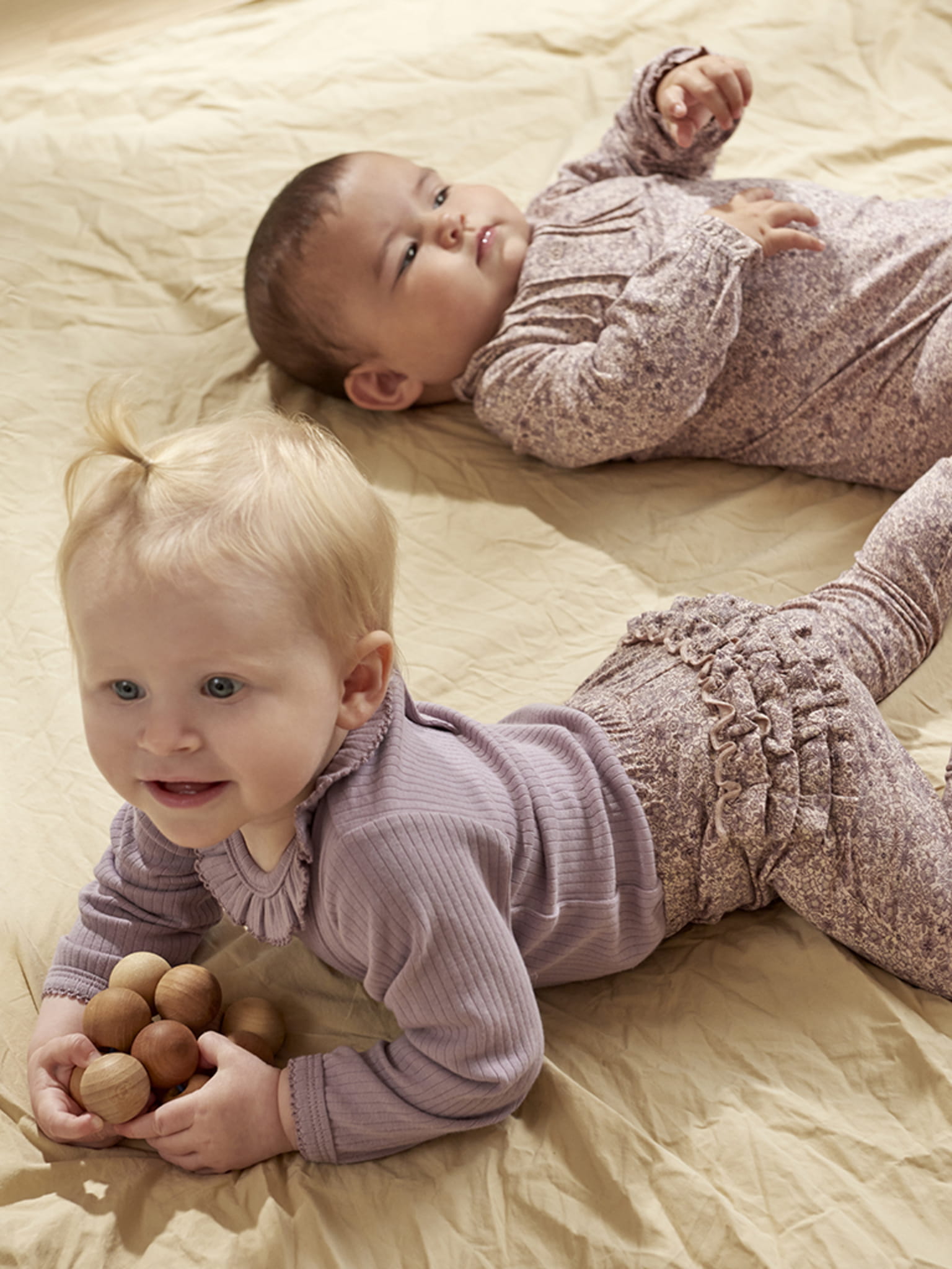 Zestaw składa się z dwóch body - jednego z nadrukiem na całej powierzchni i jednego w jednolitym kolorze. Zapinane na zatrzaski z tyłu między nogawkam oraz na karku.