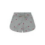 Spodenki Polly wykonane są z bawełny organicznej w kratkę z haftem truskawkowym.