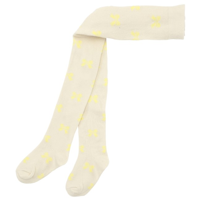 Rajstopy wykonane są w 75% z bawełny i 25% z poliestru. Jedna w uroczym żółtym kolorze z kokardką na całej powierzchni.