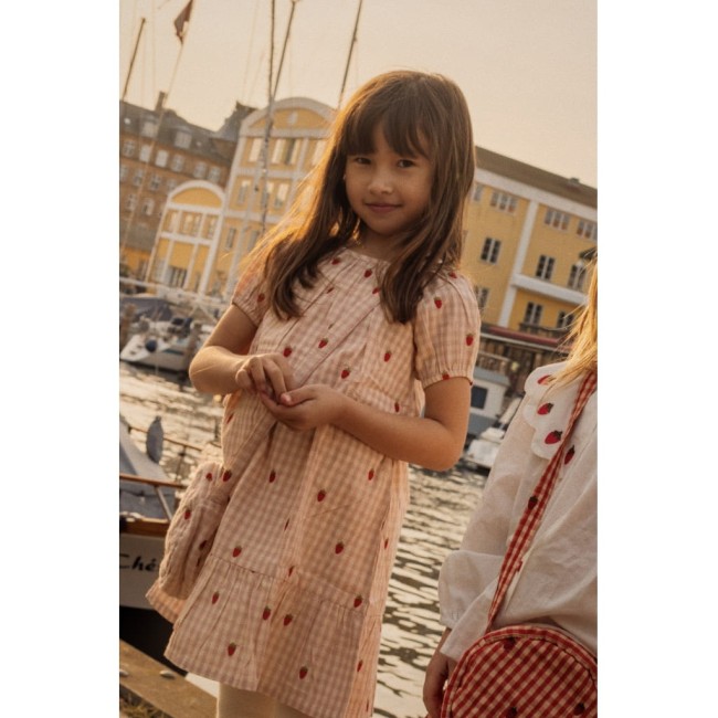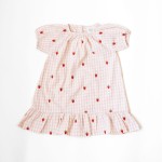 Sukienka Dolly w kratkę z haftem w truskawki.