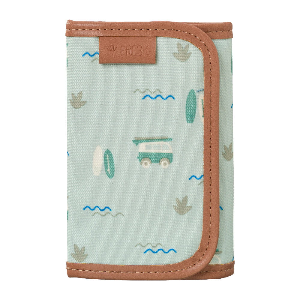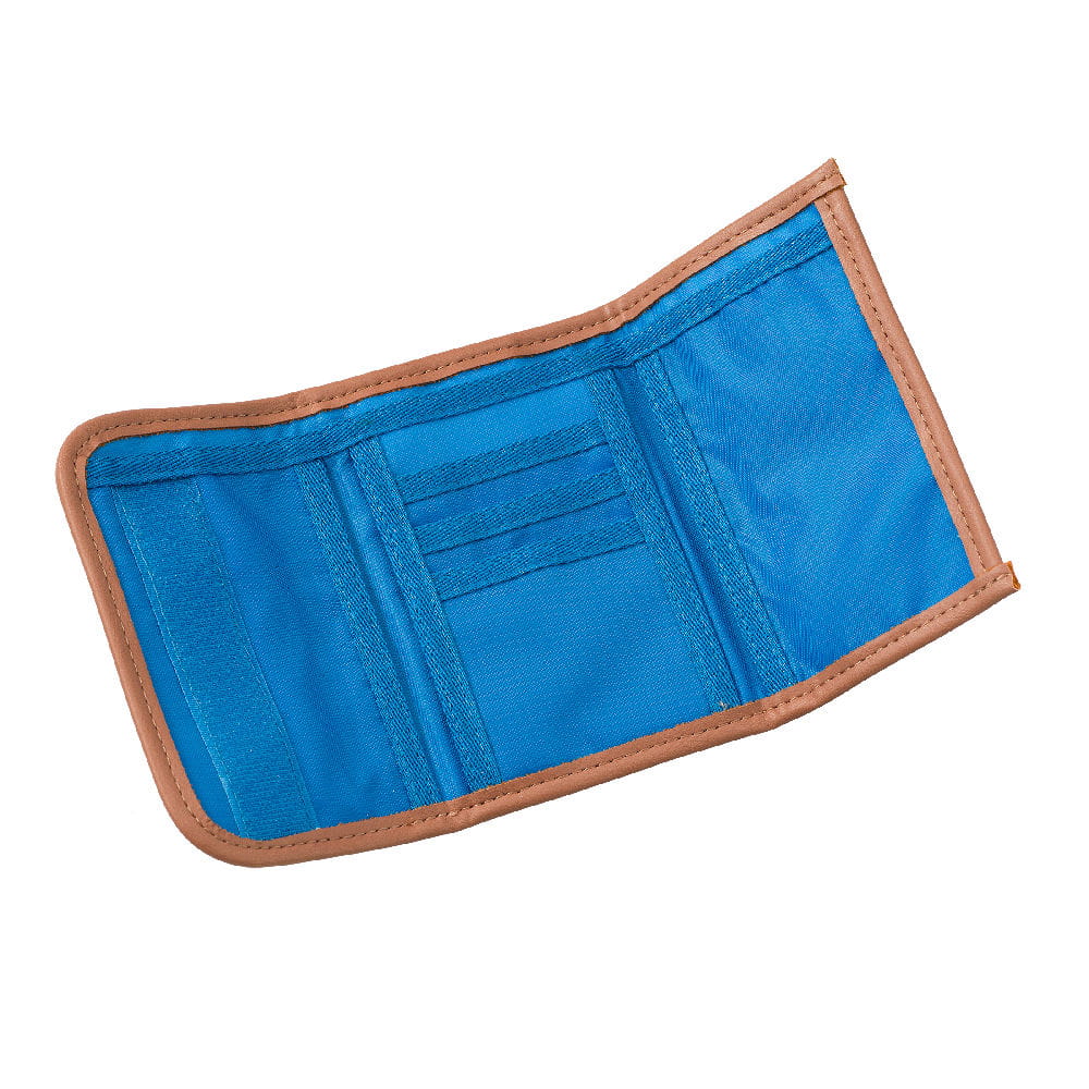Portfel z praktycznymi kieszonkami , dodatkową kieszonką na suwak i zapięciem na rzep. Posiada dodatkowo metalowe kółko do przypięcia kluczy.