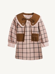 Bawełniana sukienka w kratę o prostym kroju z długim rękawem zakończonym ściągaczem. Długość przed kolano. Zaprojektowana z haftowanym kołnierzem z falbanką, kieszeniami i zapięciem na guziki z tyłu sukienki.