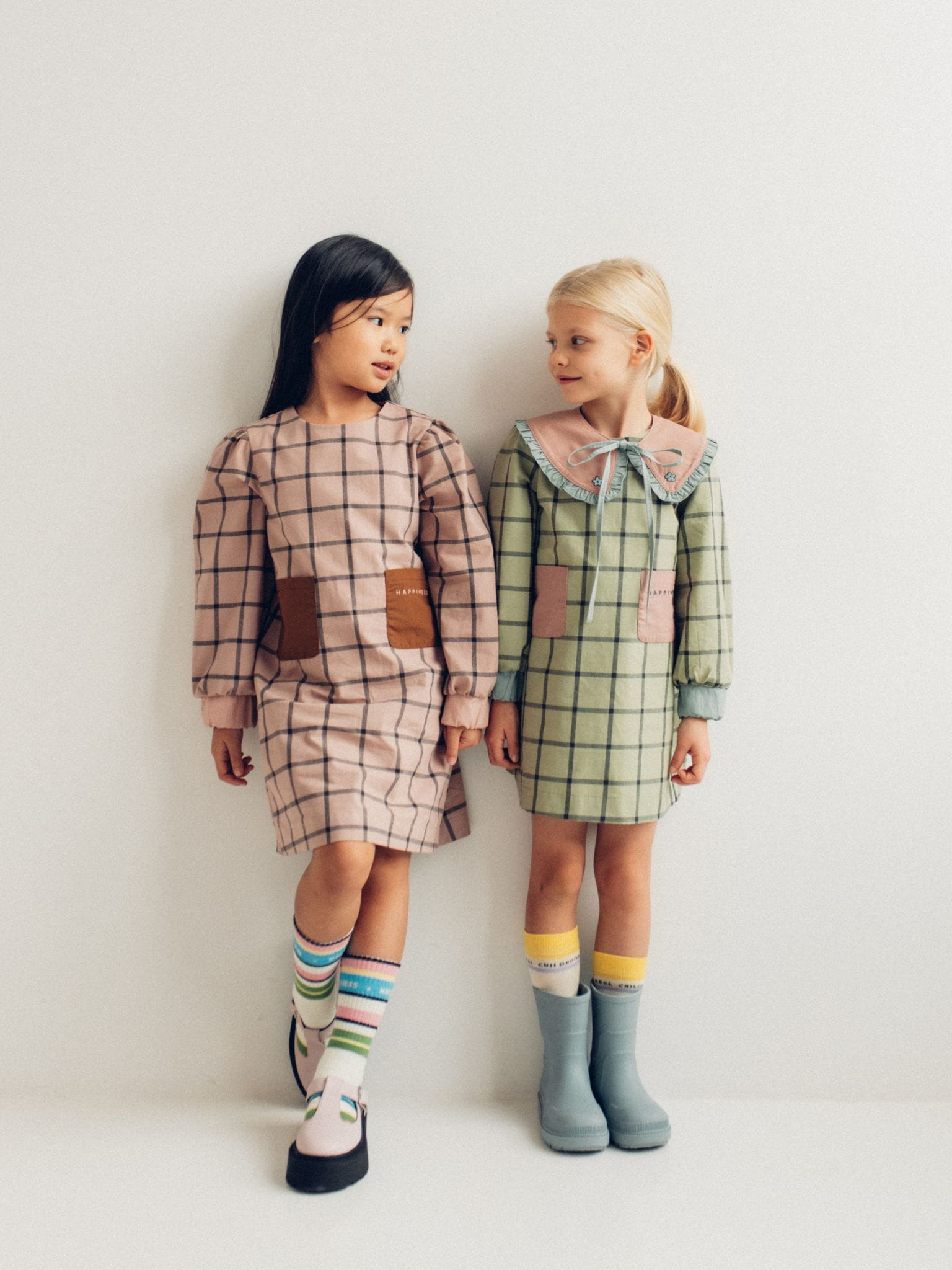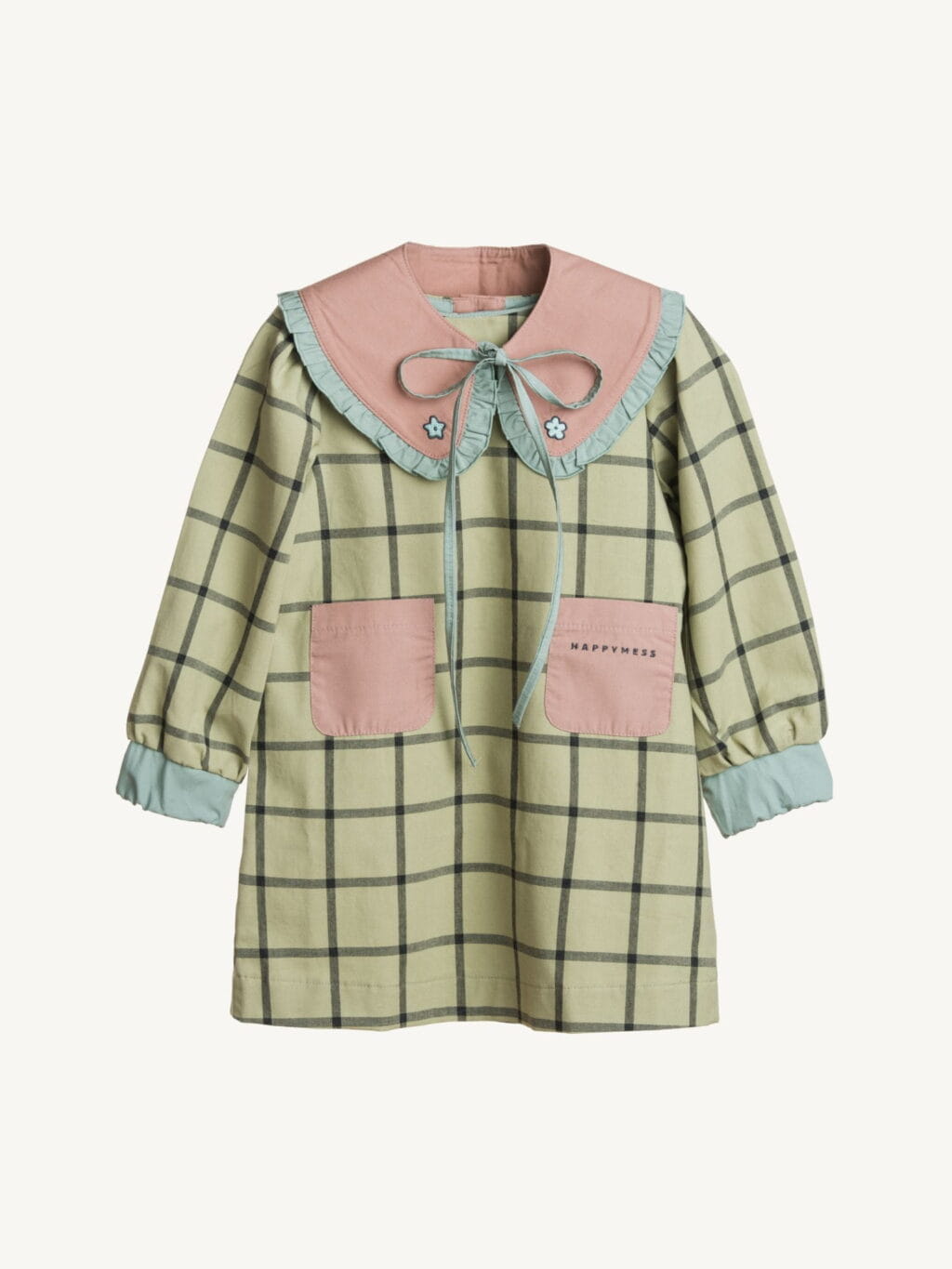Happymess sukienka w kratę – misty green