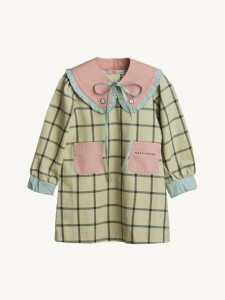 Bawełniana sukienka w kratę o prostym kroju z długim rękawem zakończonym ściągaczem. Długość przed kolano. Zaprojektowana z haftowanym kołnierzem z falbanką, kieszeniami i zapięciem na guziki z tyłu sukienki.