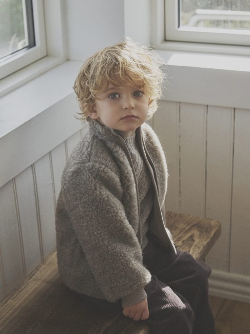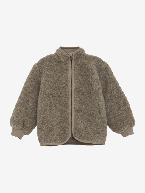 Urocza wełniana kurtka HUTTEliHUT z kołnierzem przy szyi. Zapinana z przodu na zamek błyskawiczny z osłoną podbródka. Wykonana jest z wełny merynosów. Wewnątrz bawełniana podszewka.