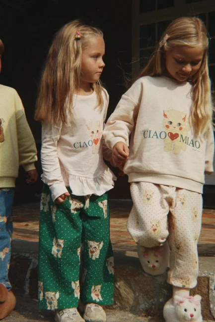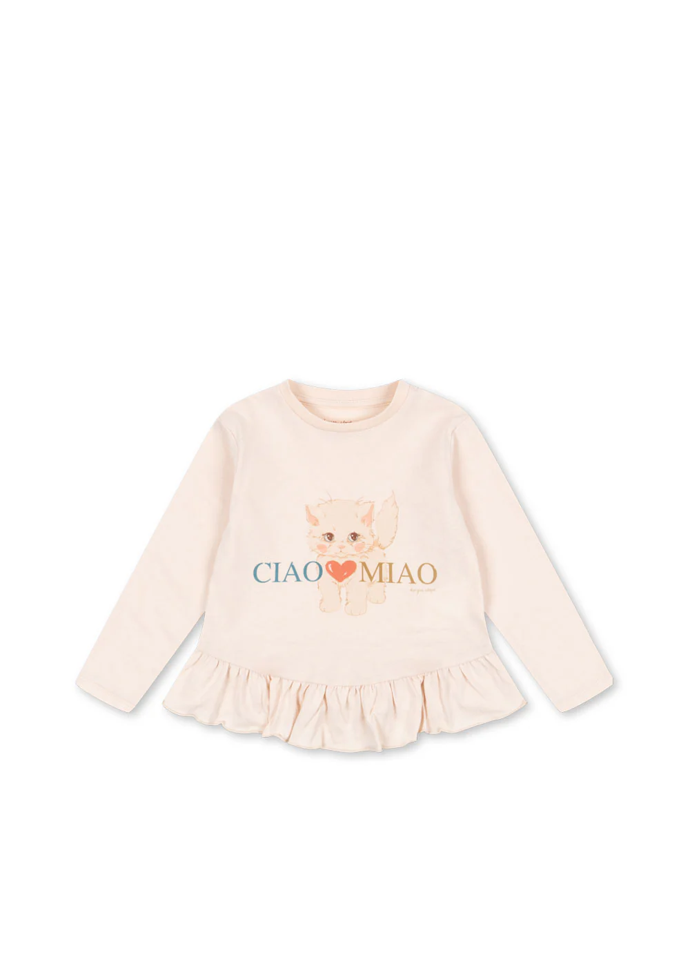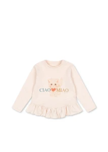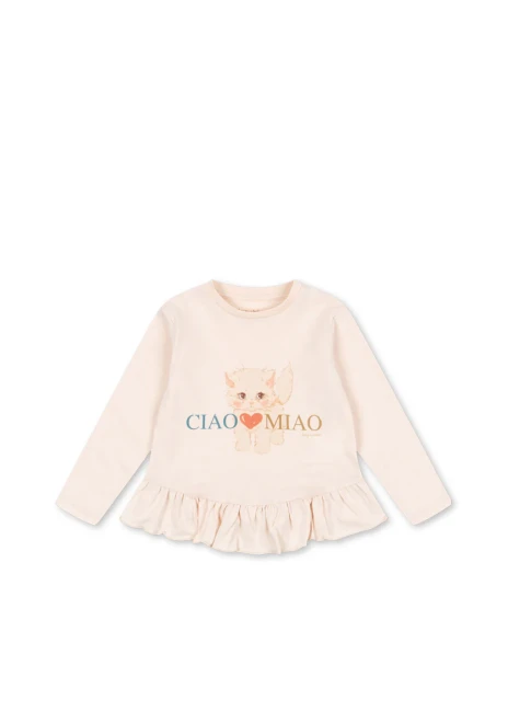 Koszulka Kitty Frill to miękki i uwielbiany element garderoby z baskinką, długimi rękawami i uroczym nadrukiem kotka z przodu. Wykonana w 100% z organicznej bawełny, która jest lekka i oddychająca. GOTS, Organic, certyfikat CU1094701