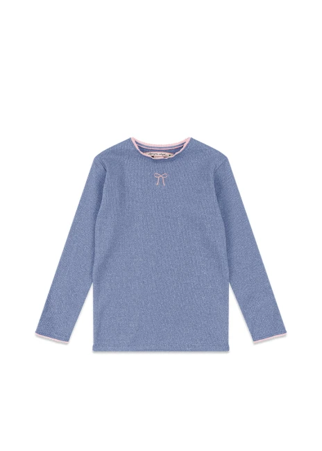 Bluzka z miękkim i elastycznym ściągaczem. Błyszczące wykończenie z lureksu dodaje blasku temu idealnemu elementowi codziennego użytku. Wykonane w 60% z bawełny, 38% lureksu i 2% elastanu.