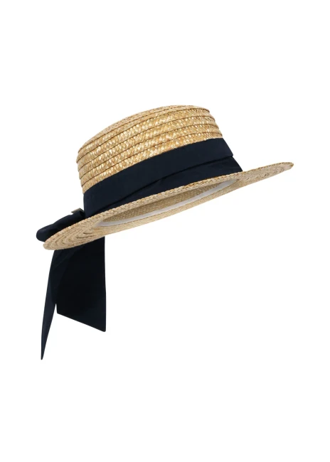 Klasyczny kapelusz słomkowy z szerokim rondem i ozdobnym bawełnianym paskiem. Wykonany w 100% ze słomy
