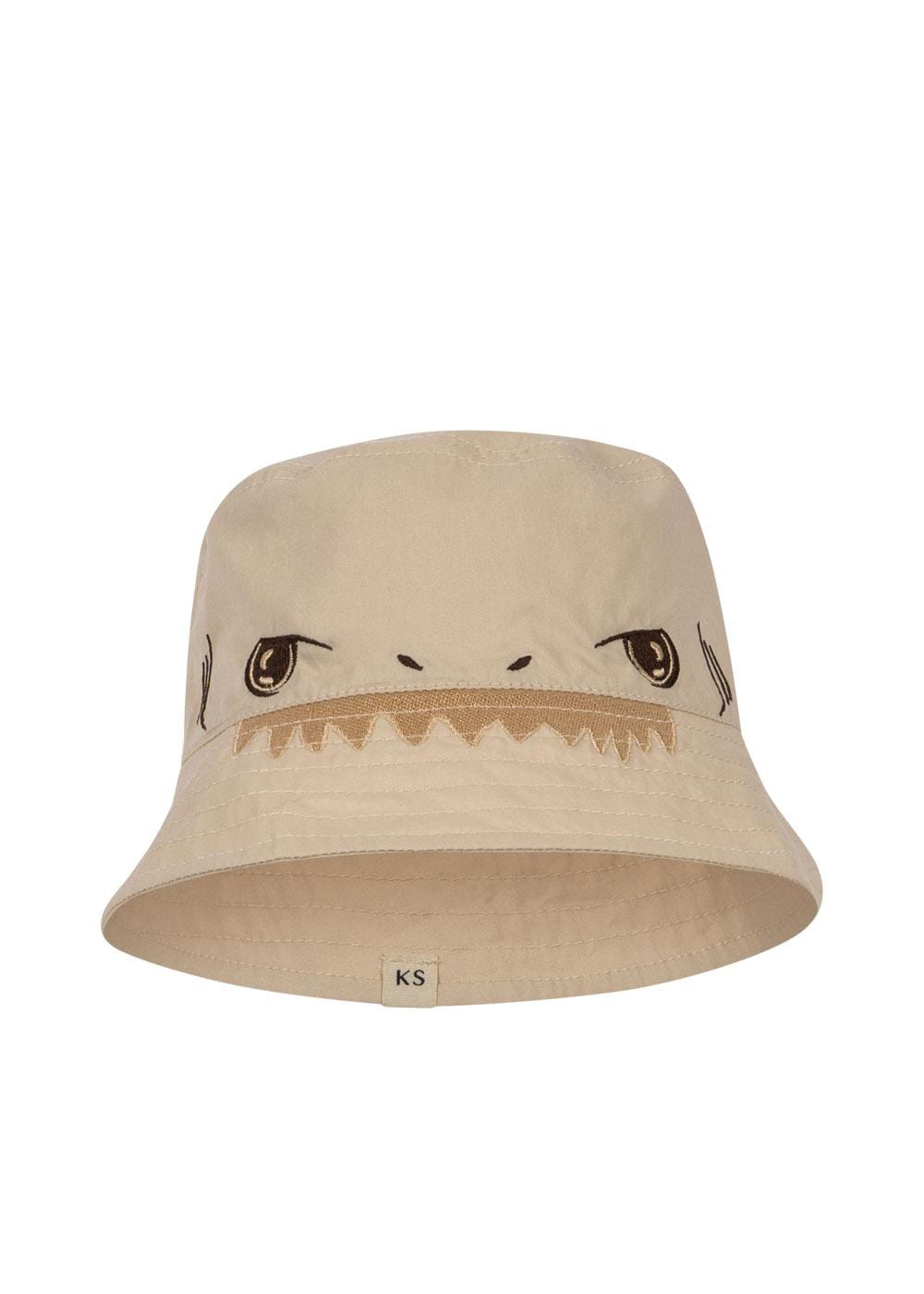 Kapelusz przeciwsłoneczny z motywem kota, uszami kota na górze i ozdobną kokardą z tyłu. Zaprojektowany ze sznurkami, które można zawiązać pod brodą. Materiał: 100% bawełna organiczna. GOTS, Organic, certyfikowany przez CU1094701.