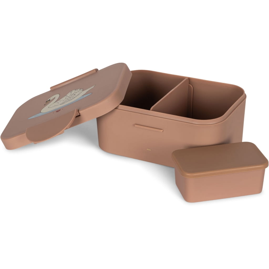 Pudełko śniadaniowe marki Konges Slojd wykonane z PLA, zaprojektowane z łatwymi do zapięcia zatrzaskami, które chronią przed rozlaniem.