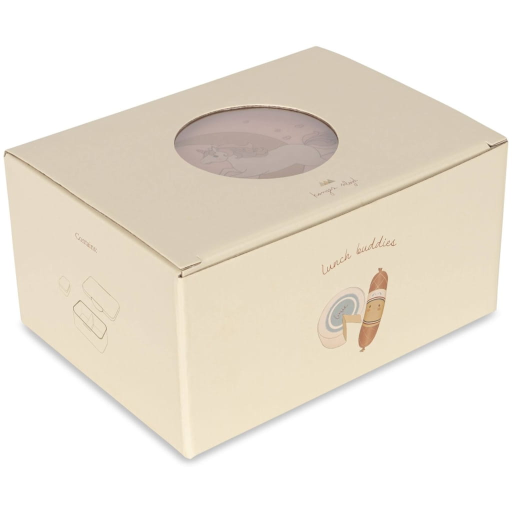 Pudełko śniadaniowe marki Konges Slojd wykonane z PLA, zaprojektowane z łatwymi do zapięcia zatrzaskami, które chronią przed rozlaniem.