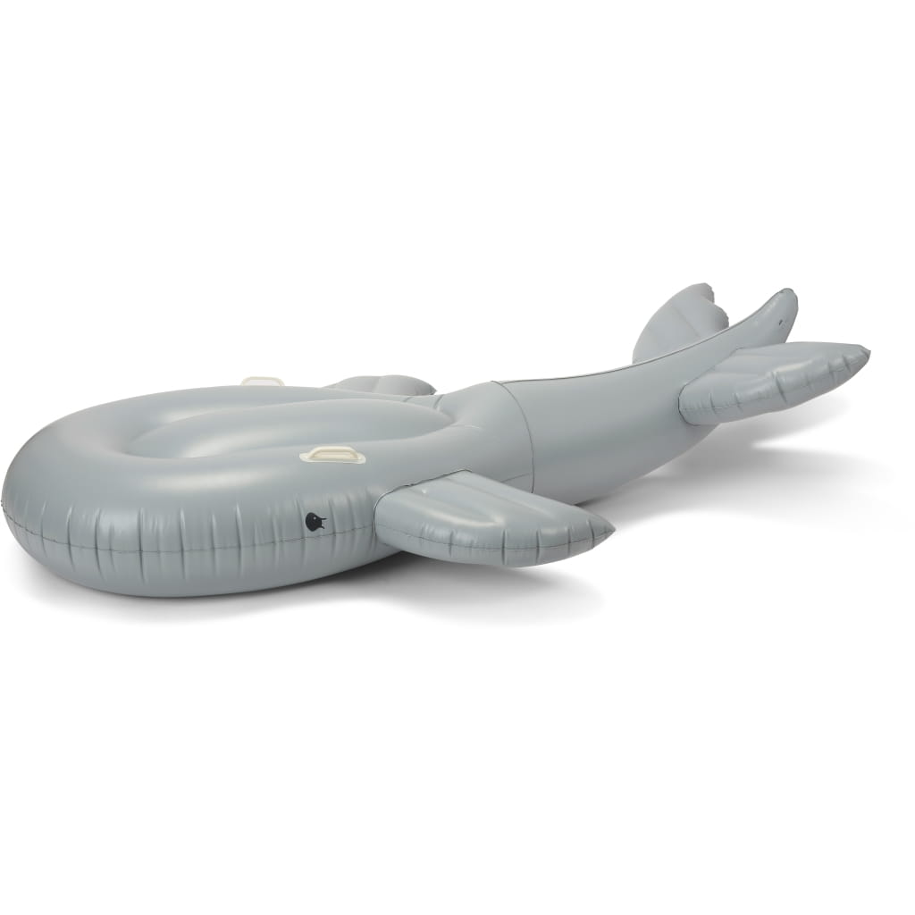 Materac w kształcie wieloryba z uchwytami.