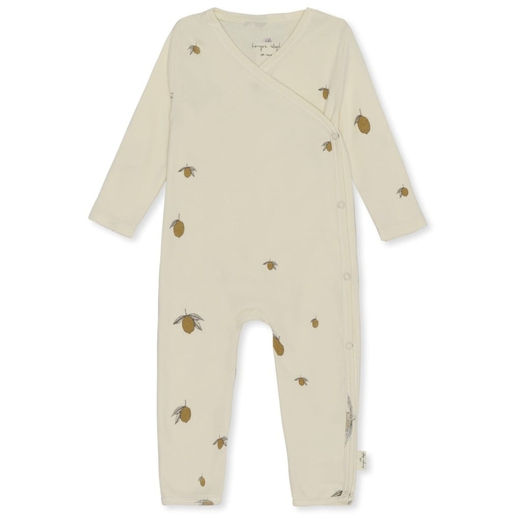 Uroczy pajac niemowlęcy z zapinaniem kopertowym, wykonany z ogranicznej bawełny.