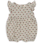 Konges slojd miękki romper z falbankami, wykonany z lekkiego i oddychającego muślinu. Wykonane w 100% z bawełny organicznej Naciśnij guziki przy rozwarciu nogawek w rozmiarach 1m-3Y.