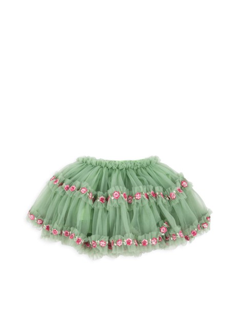 Spódniczka z miękkiego tiulu o eleganckiej objętości. Zaprojektowana z falbankami i kwiatami na całej powierzchni, aby uzyskać romantyczny wygląd. Wykonana w 100% z poliamidu i podszyta miękką bawełną w 100%.