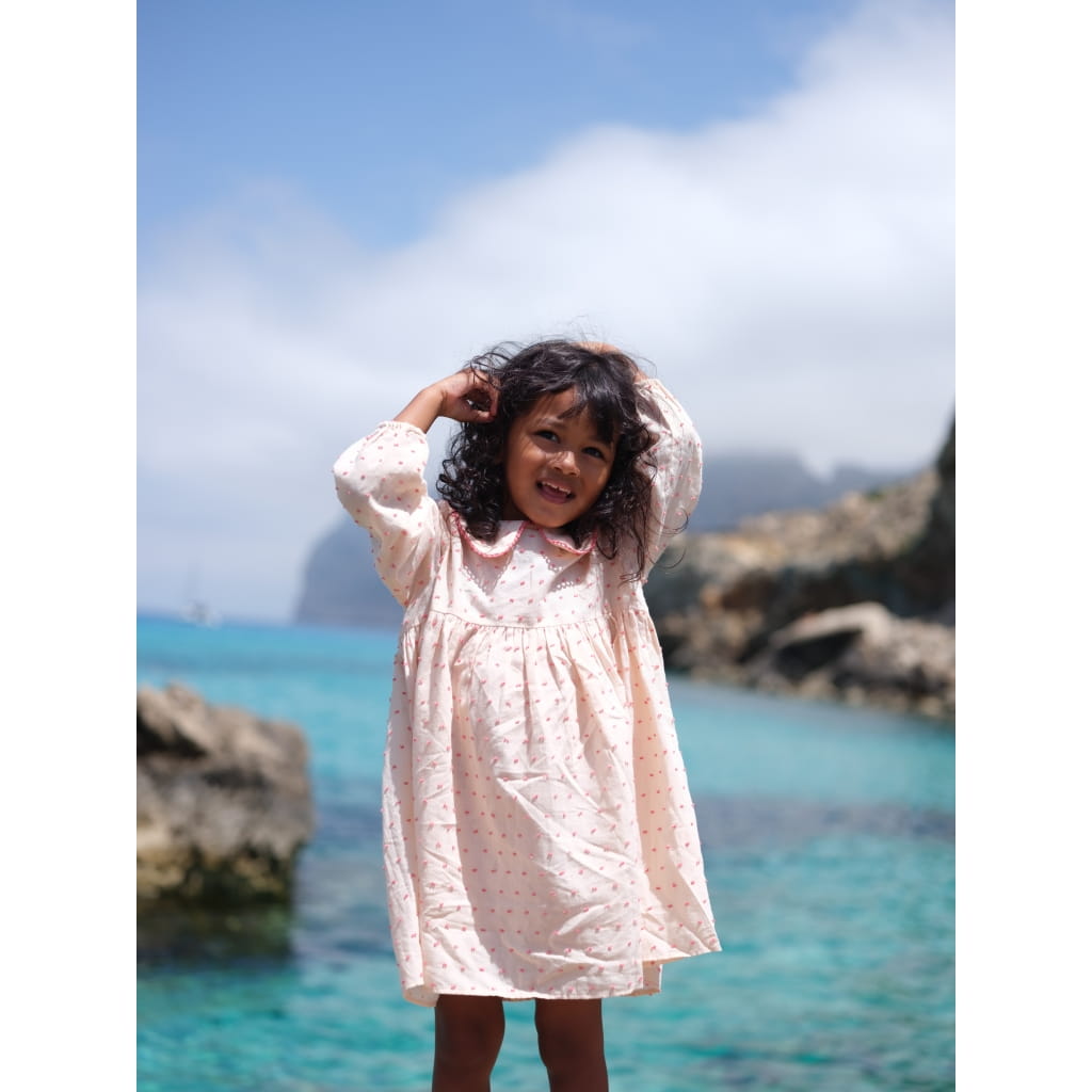 Lekka i miękka sukienka wykonana w 100% z bawełny organicznej w szwajcarskie kropki.