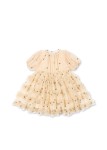 Miękka sukienka z bufiastymi rękawami i dużą objętością.