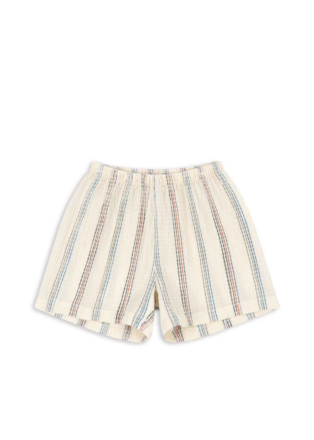 Miękkie bawełniane spodenki ze ściągaczem w pasie wykonane ze strukturyzowanego materiału.