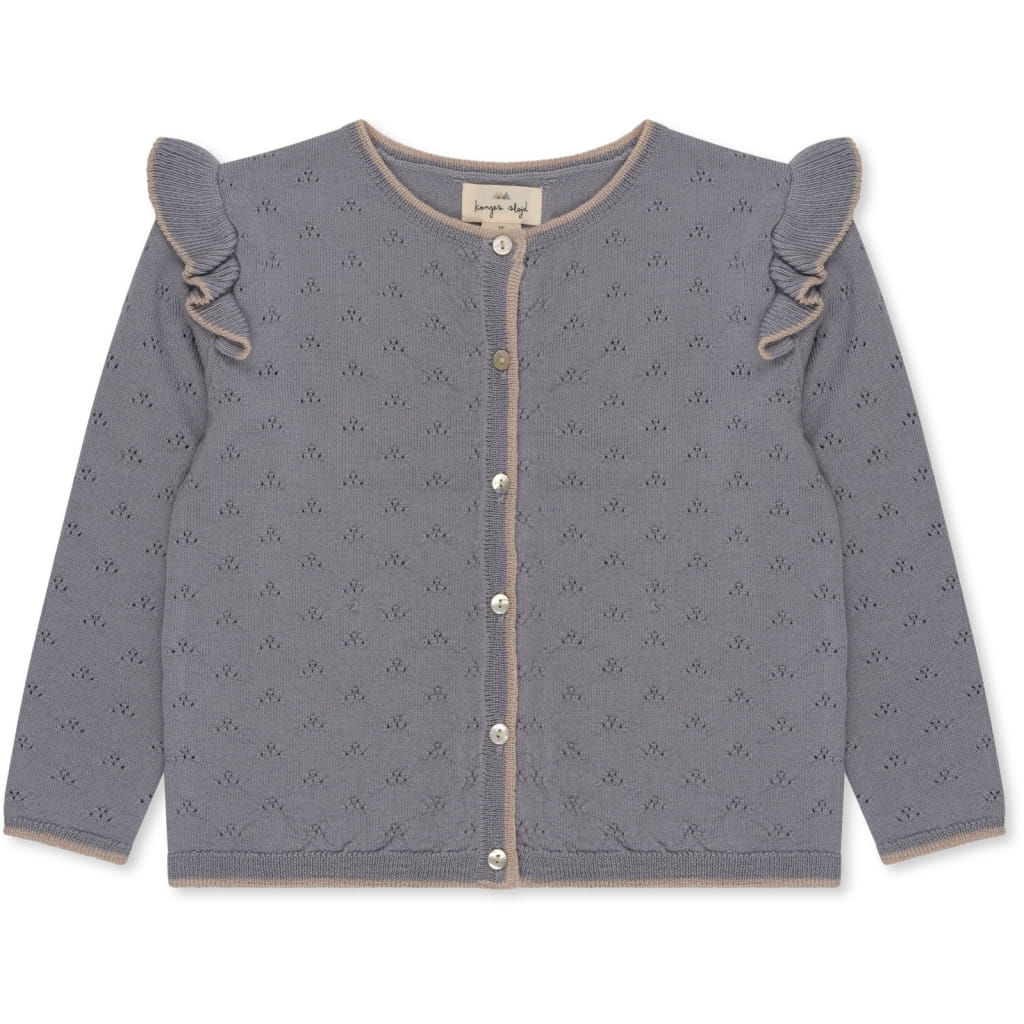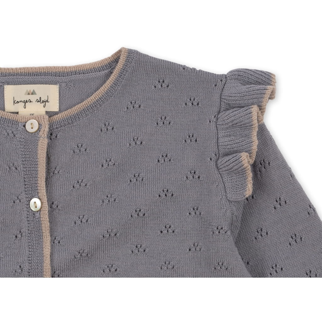 Konges slojd cardigan z dzianiny pointelle, wykonany w 45% z bawełny i w 55% z wełny.